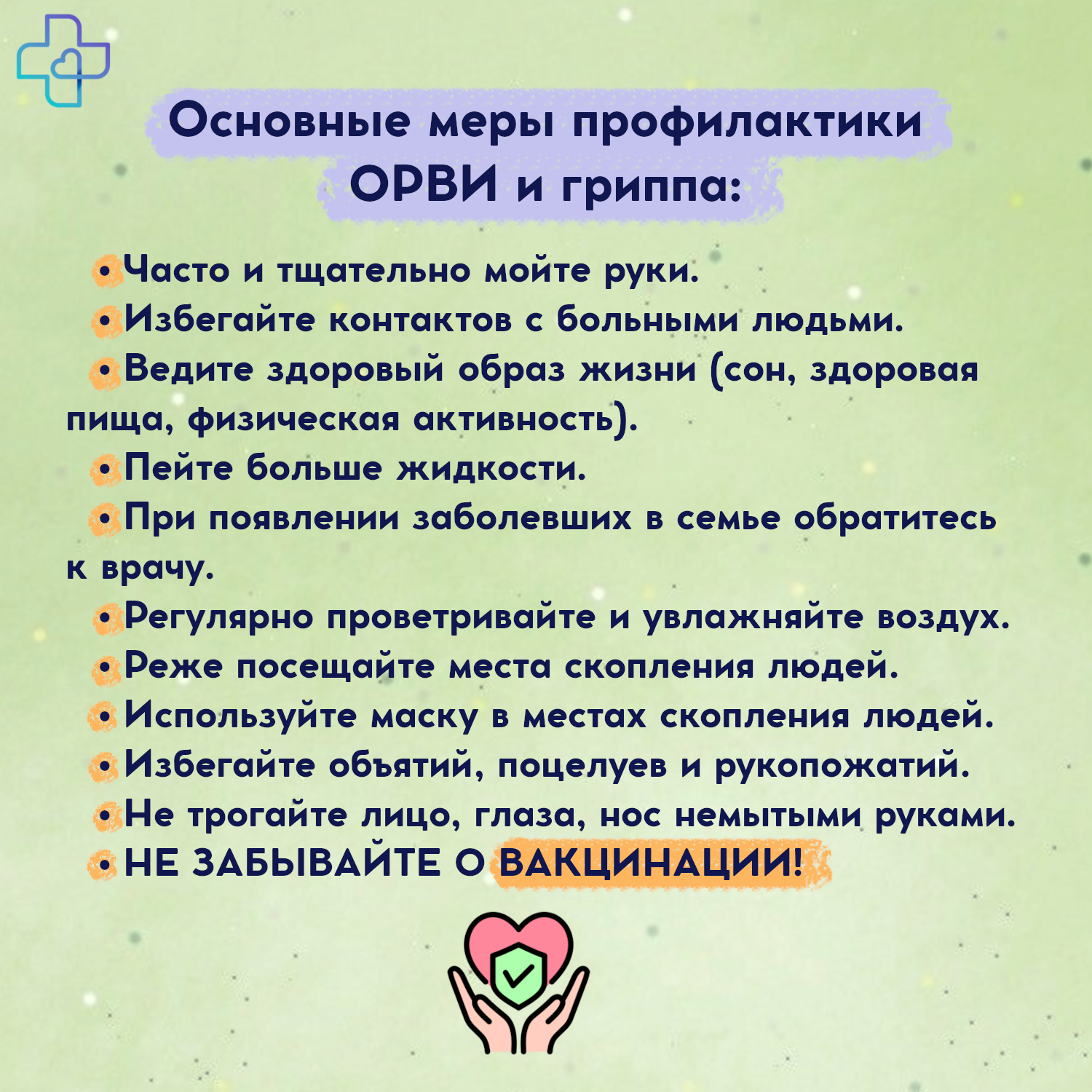 Основные меры профилактики ОРВИ и гриппа: